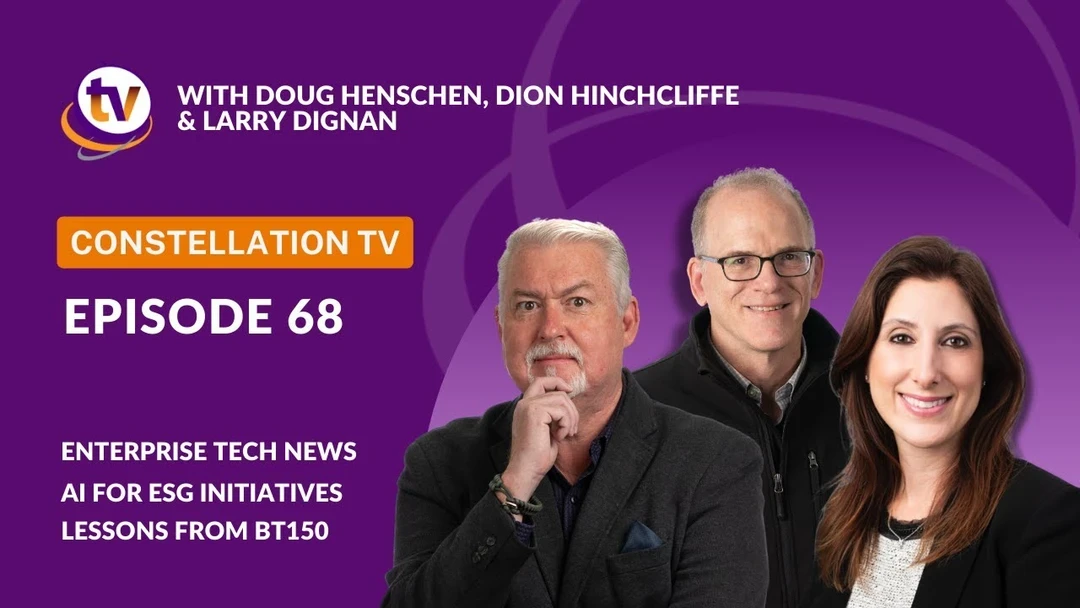 🎬 This week on ConstellationTV episode 68, co-hosts Doug Henschen & Dion Hinchcliffe give a rundown of the latest enterprise tech news, Larry Dignan interviews SuperNova winner Marie Merle Caekebeke from Baker Hughes about using AI and LLMs for ESG Materiality Assessments, then watch a CCE 2023 panel recap about lessons learned from our BT150 alumni.