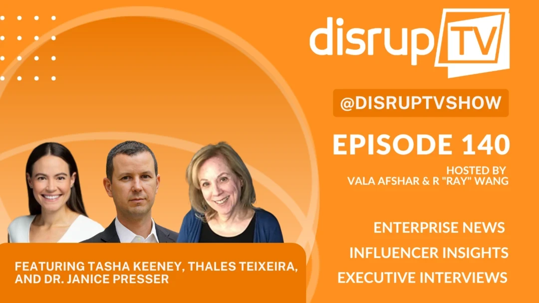 In this episode of DisrupTV (Episode 140), hosts R “Ray” Wang and Vala Afshar engage with Tasha Keeney (Analyst, ARK Invest), Thales Teixeira (Author & Associate Professor, Harvard Business School), and Dr. Janice Presser (Founder & CTO, Teamability.com). Together, they explore how shifts in consumer behavior, digital disruption, and team dynamics are shaping the way businesses operate and innovate.
