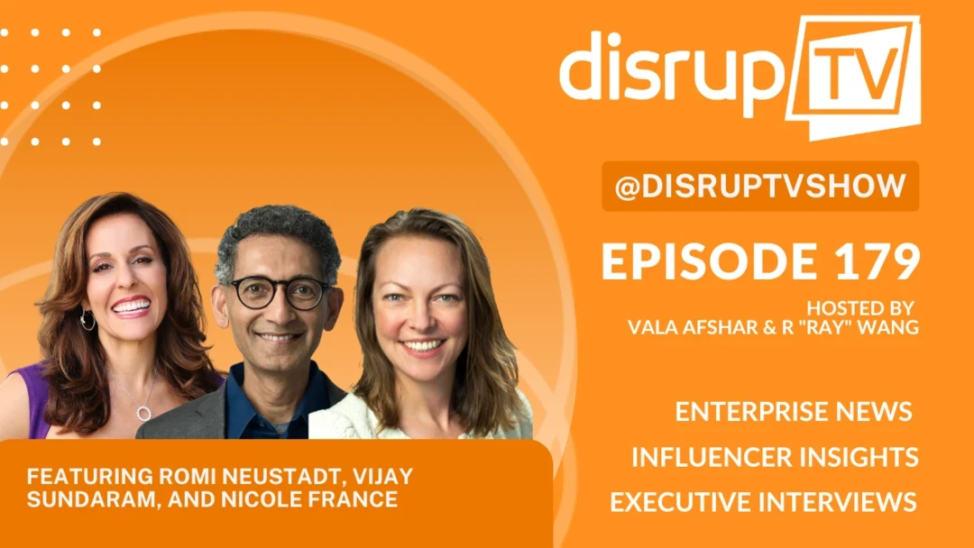 In this episode of DisrupTV, hosts R “Ray” Wang and Vala Afshar talk with Romi Neustadt, Vijay Sundaram, and Nicole France about empowering leaders, rethinking digital transformation strategies, and creating more human-centered workplaces.