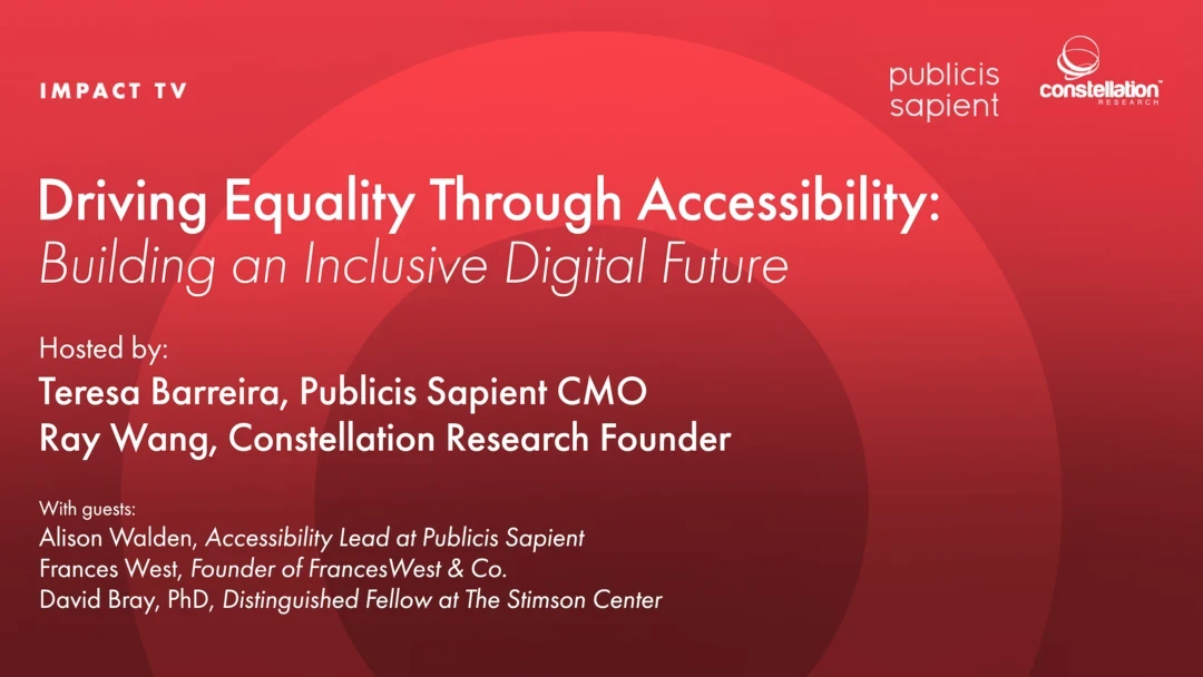 0:00: Impact TV introduction with co-hosts R "Ray" Wang, founder of Constellation Research, and Teresa Barreira, CMO of Publicis Sapient.